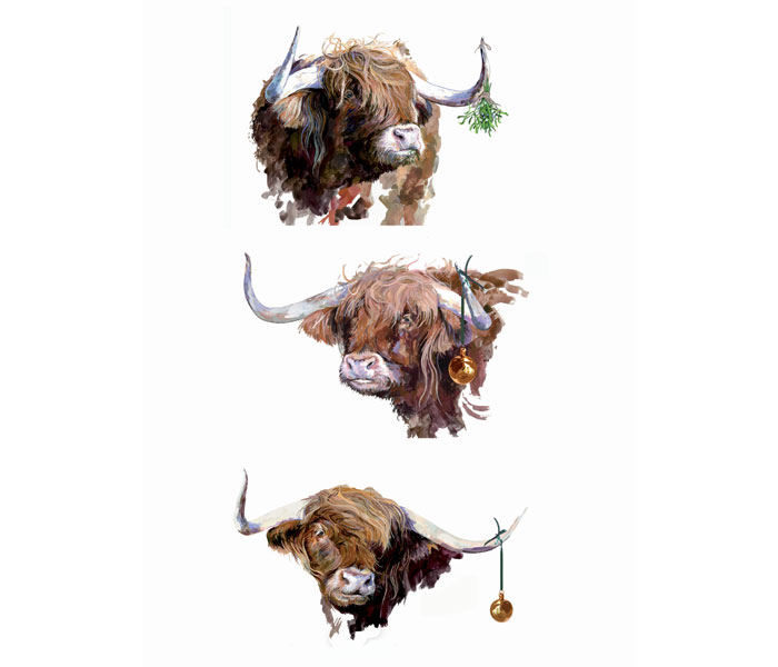 Set Six - Christmas Coos Set of three different images (six cards in total based on original paintings) Medium - Printed card and envelope Price - £10 per set including uk postage Contact me