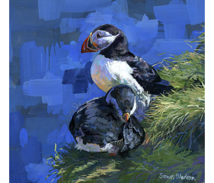 Title - On the Firth Subject - Puffins Medium - Gouache. Size - 22.5 x 20.5 cms (Unframed) 85x85cms (framed) Price -£